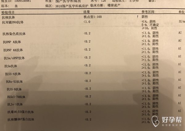 女,28岁,2019年7月怀孕生化,2020年5月试管婴儿D3冻胚后第12天hcg400+怀孕,6周B超有,8周B超不见胎心,后复查还是未见胎心,诊断为胎停育。后做了免疫全套检查,各项指标均为阴性,只有抗核抗体1:100,看了风湿免疫科专家说是这个数值不影响怀孕,大概率不是导致胎停的原因……我现在很迷茫,不知道该怎么办。