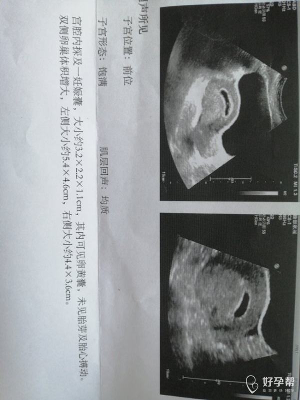 您好,我试管怀孕六周零2天的时候去医院检查,血值和腹部b超如下。孕囊好像已不小,但是没有测出。请问是不是这么大小的孕囊和血值应该能测出才对?我需要做什么处理吗?