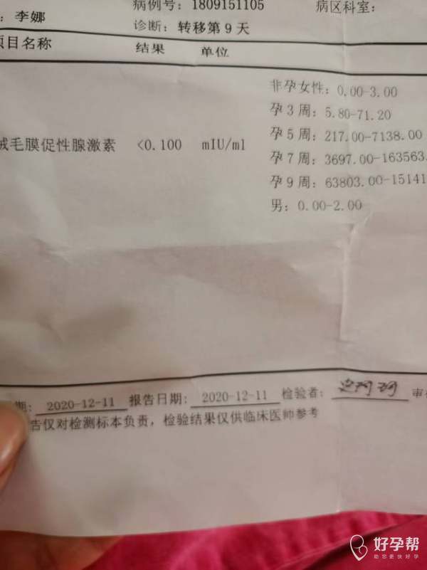 12月3号移植仅有的两枚冻胚今天是第九天一首