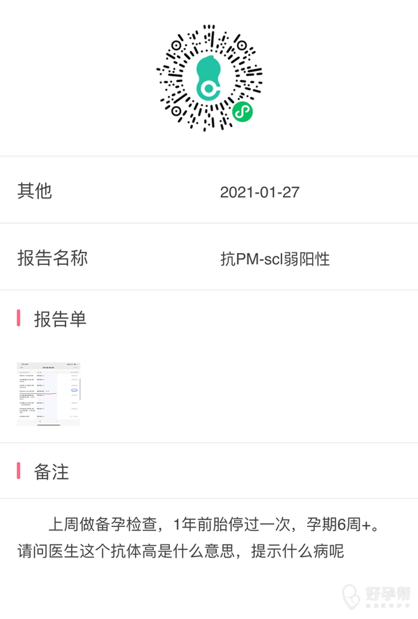 1年前有过一次5周+胎停备孕做检查查出这个抗