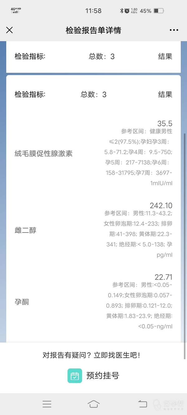 前面是排卵第十二天早上抽血检查的后面是第十四