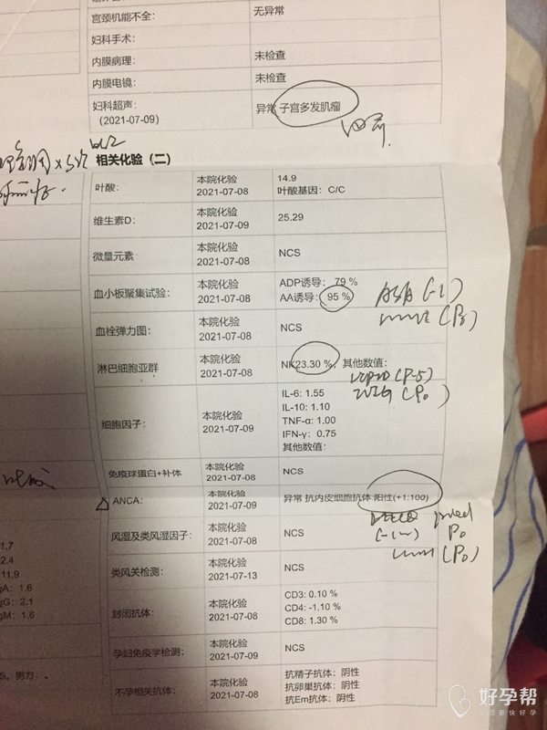 目前看B超没有大肌瘤,不影响着床,内膜也可以,化验指标有部分异常,也已生殖科医生看看,大的问题没有,CA125...
