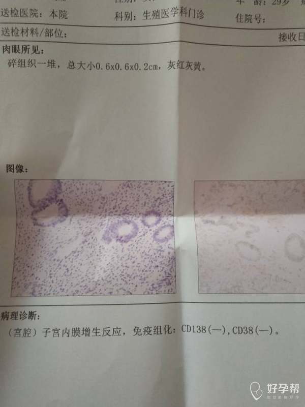 上个月移植生化了月经干净三天做的宫腔镜报告单