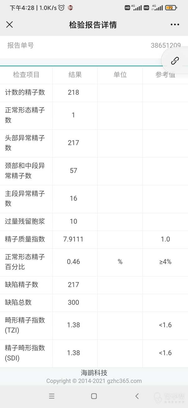 这份报告精子畸形高,查查引起畸形的原因,针对吃中成药3—6个月复查看正常形态精子情况,好转人工授精,还是很严重...
