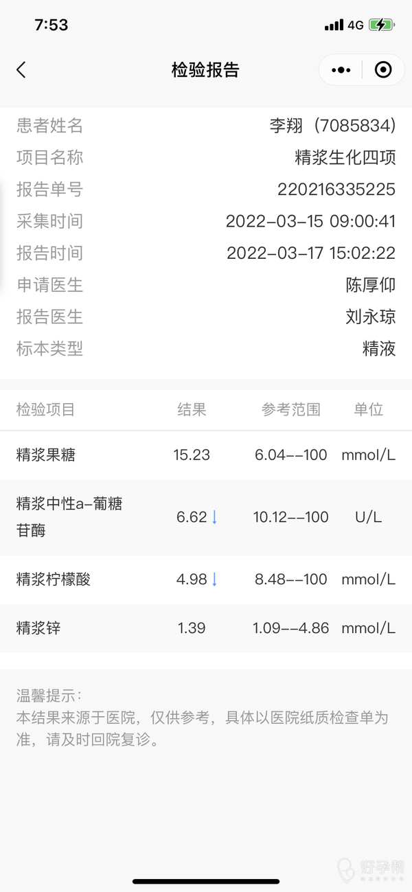 精浆柠檬酸下降,精浆柠檬酸与血清睾酮有关,与精子成活率有关,精浆中性葡糖苷酶与附睾功能及通畅度有关。具体要结合精液常规报告,咨询生殖中心和泌尿科医生,他们专业一些。