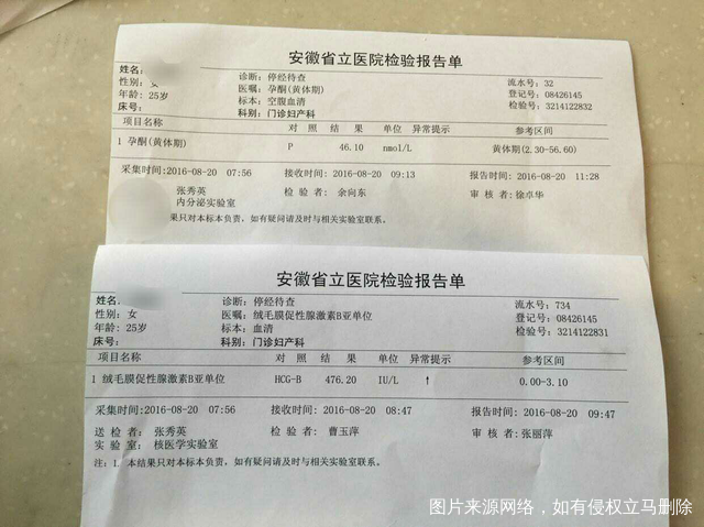 正好那天是周日,想着周一测下看看有加深没,悲催的是周一到周四都是一条浅印,心里难受啊,查了下人家说秀儿的试纸容易炸糊,想着应该没戏了。周五测的时候竟然加深了一点点,昨天果断去医院,早上七点半到医院抽完血下午三点半结果才能出来,心里那个煎熬啊,下午结果出来了医生说怀了,此时的情景宝妈们脑补[偷笑]说出来好尴尬[偷笑]