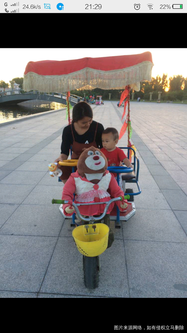 爸爸妈妈带你去公园玩耍,虽然带着你很累,但我们一家三口都很开心!