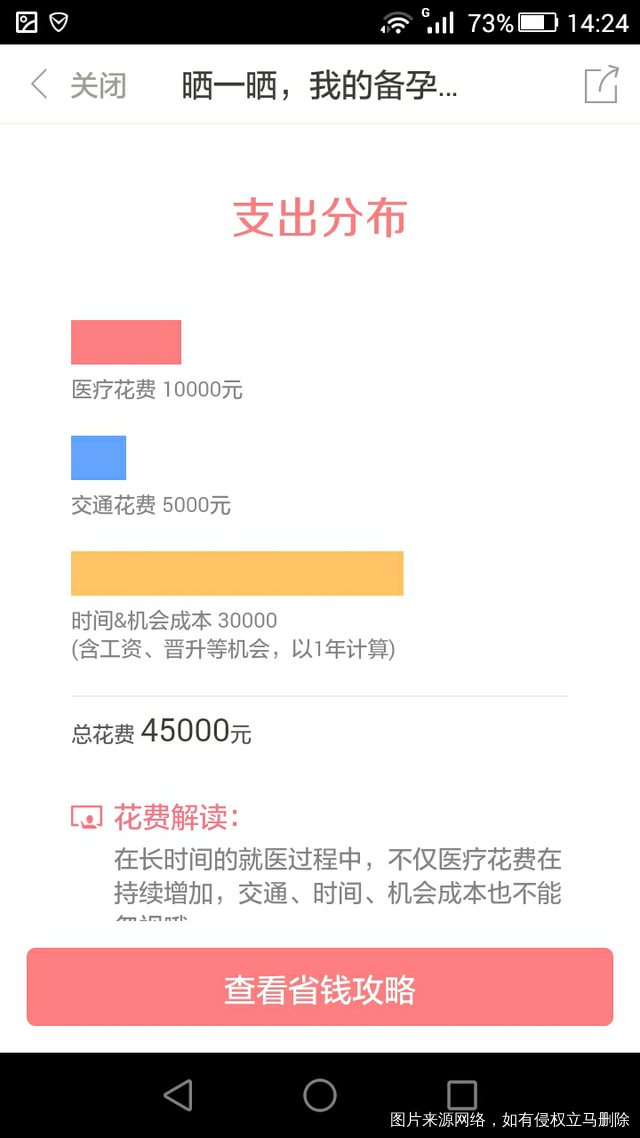 开始觉得怀孕很容易,并没当回事。备孕三月没成功, 为了要宝宝,我们也做了不少准备,走了不少弯路。算,吃黑豆,屁股地下垫底,各种尝试,还是不孕。 开始有些着急,只好求医。 第一次我和老公一共花三千多,做了很多检查。老公没事,我输卵管有问题。做的输卵管造影。 后来又花两千做通水。
