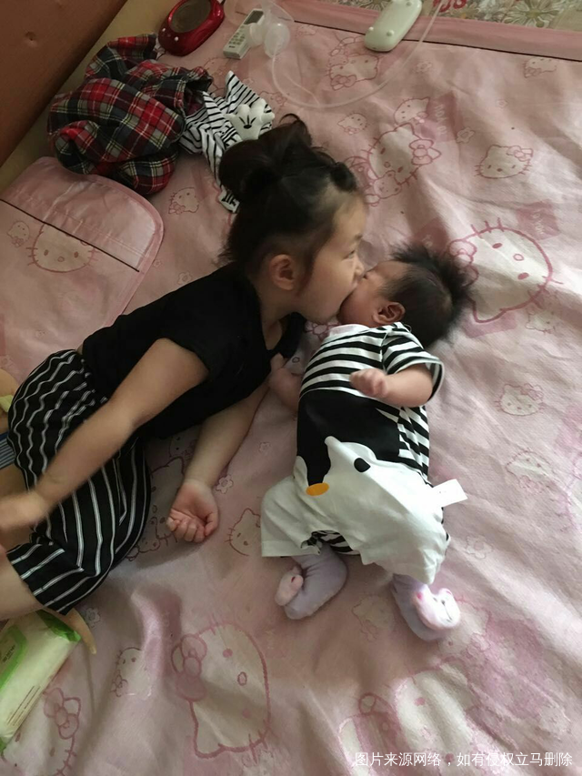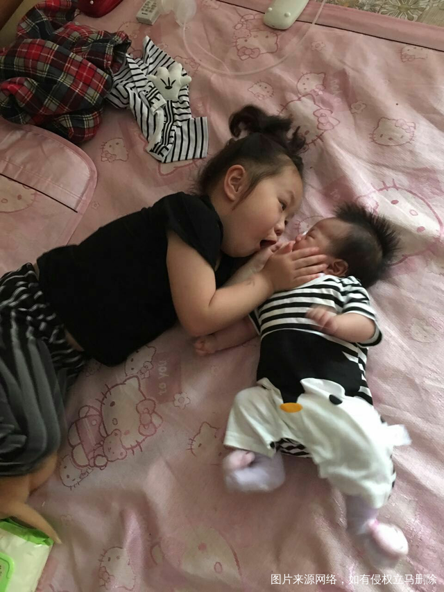 不论弟弟睡没睡着,她想亲就亲,还是张着嘴巴吸弟弟的脸,一吸把弟弟小脸吸的通红,弟弟哇的一声又哭了,接着我跟后面就追姐姐,真想收拾她啊,要么就是舌头伸出来舔弟弟的脸,要么就是小手揉弟弟脸,哎,天天都这样,特别喜欢折腾弟弟,怎么说都不听,烦躁的我就武力解决,可是每次都留着眼泪和我说,妈妈,我下次再也不干了,结果还是屡次屡犯,每次打了之后,等她熟睡的时候我就跑到小床去,搂着她,抱抱她,觉得好对不起她[呜呜]
