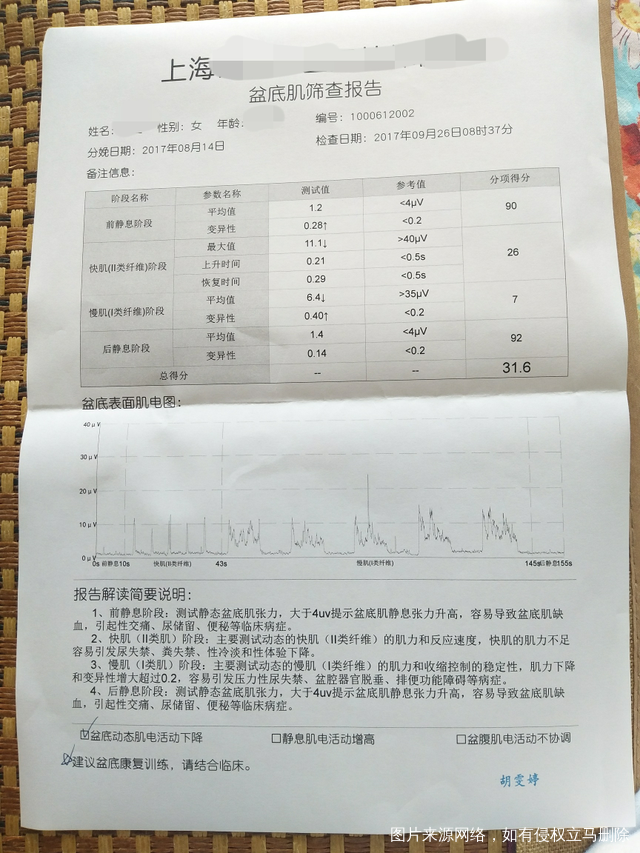 好久没发帖子了,真的没时间,也没心情,8月14号顺产8斤小公主一枚,具体应该说是难产,生孩子的痛真的是没有语言形容,痛个两三天也就算了,出院后回家做月子,各种问题因为是巨大儿,生宝宝是时间比较长,挤压膀胱,直肠,回家后严重便秘,小便不畅通,还有痔疮,这滋味真的是痛苦极了,庆幸的是我没有母乳可以吃药治疗,先解决便秘陆续用了5支开塞露,吃了两次润肠通便的药,终于好转了,接下来是小便的问题,不能自己解小便,是因为膀胱肌肉麻痹了,每次解小便都要用力挤,挤一下出来一段,再挤一下,就这样过了20天,求助家里亲戚(妇产科医生)告诉我吃消炎药左氧氟沙星吃了5盒也好转了,痔疮不严重用了点药就也好多了,这也就快出月子了,挺开心的,如愿得了小公主,身上的病痛也好的差不多了,就是感觉下面还不是很舒服,心想时间短肯定没这么快好的,等待42天产后检查,没想到检查结果是这样的,伤心