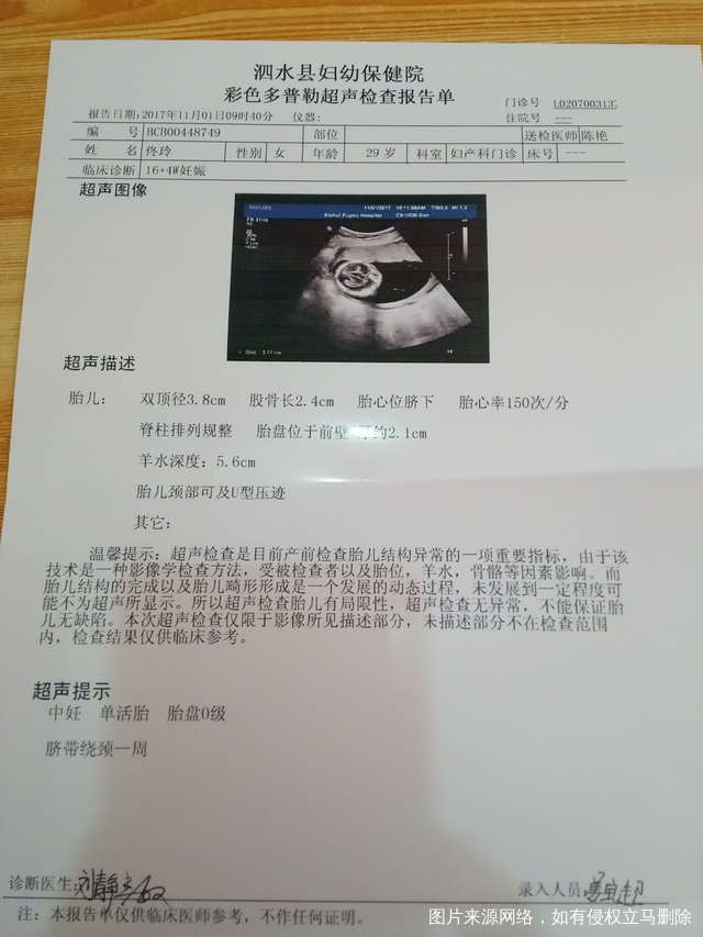 今天是怀孕16周去做了胎心监测还有做了一个B