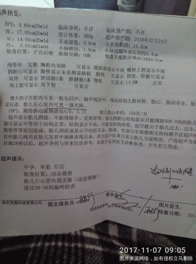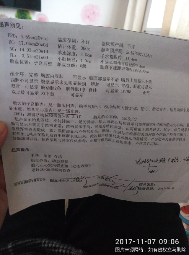 今天是怀孕16周去做了胎心监测还有做了一个B