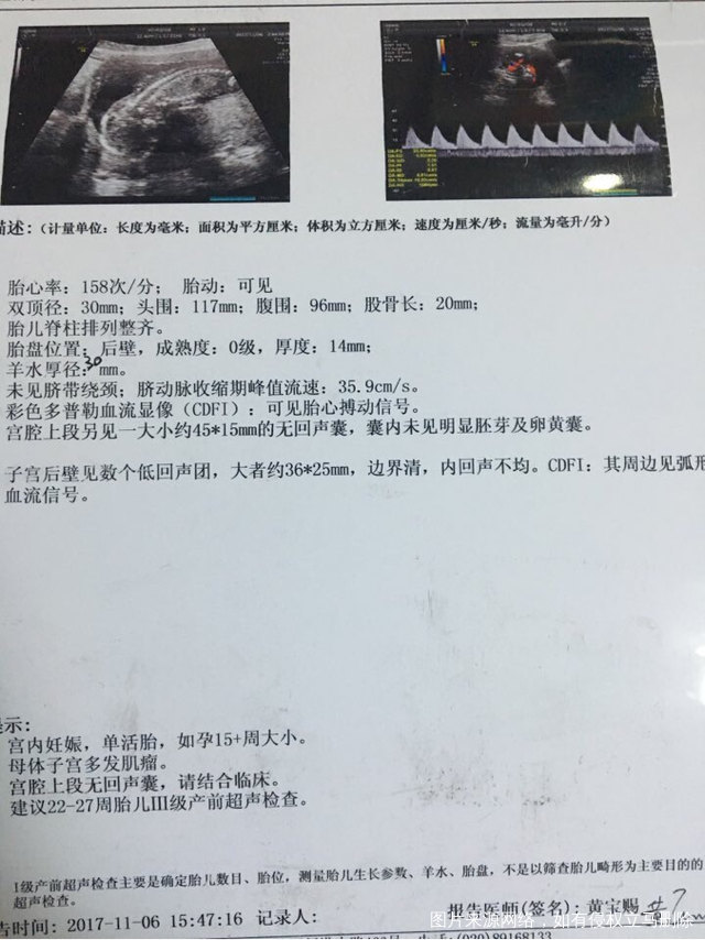 今天是怀孕16周去做了胎心监测还有做了一个B
