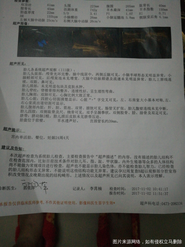 今天是怀孕16周去做了胎心监测还有做了一个B