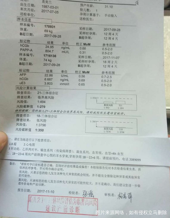 早,中期唐氏筛查结果高风险