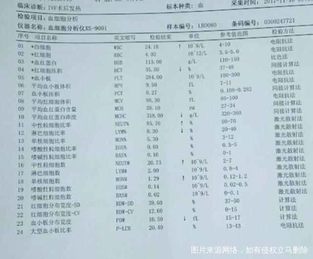 求助医生,取卵后发热,血常规结果