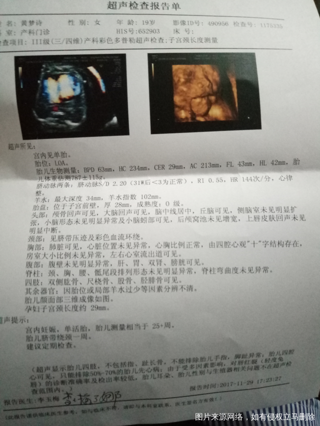 今天是怀孕16周去做了胎心监测还有做了一个B