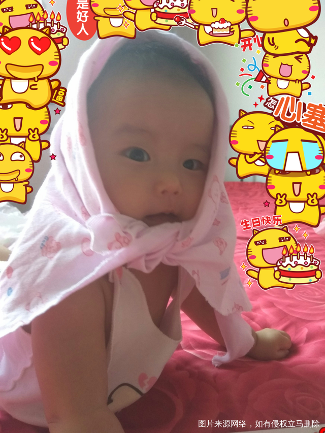 大热天给我们裹头巾 对了粉色的头巾是宝宝的尿布