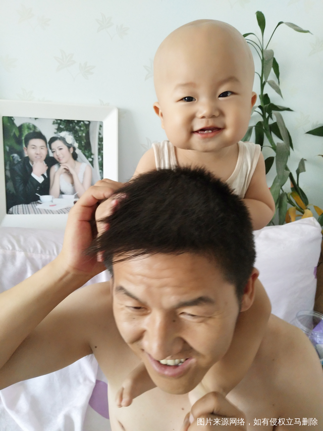 宝宝跟他爸爸很亲,真的是父子连心啊。宝宝最喜欢做的事情就是骑在宝爸的脖子上。每当宝爸把宝宝放在脖子上驮着,宝宝高兴的嘴都要咧到后脑勺了。特别好玩的是,宝宝自学了骑马动作:双手揪着宝爸的耳朵,屁股一晃一晃的,嘴巴张的好大,啊啊啊的乱叫,弄的宝爸头上、脖子上都是宝宝的口水!宝爸一点也不生气,反而夸宝宝太会玩了!