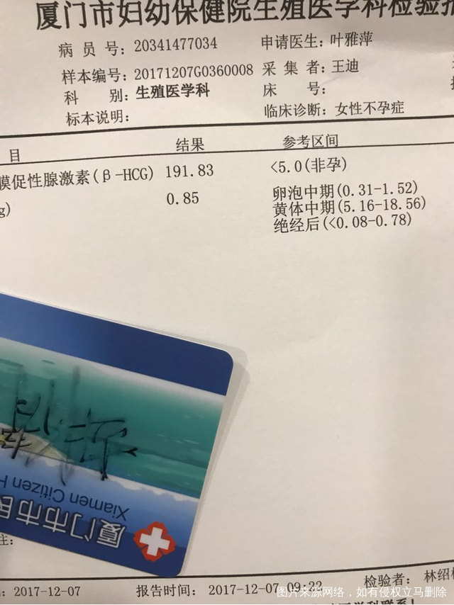 根据你描述的情况,一般最早能在移植后9-10天抽血测出HCG阳性,目前检查结果考虑发育正常,建议放松紧张的情绪,耐心等待1周后复查