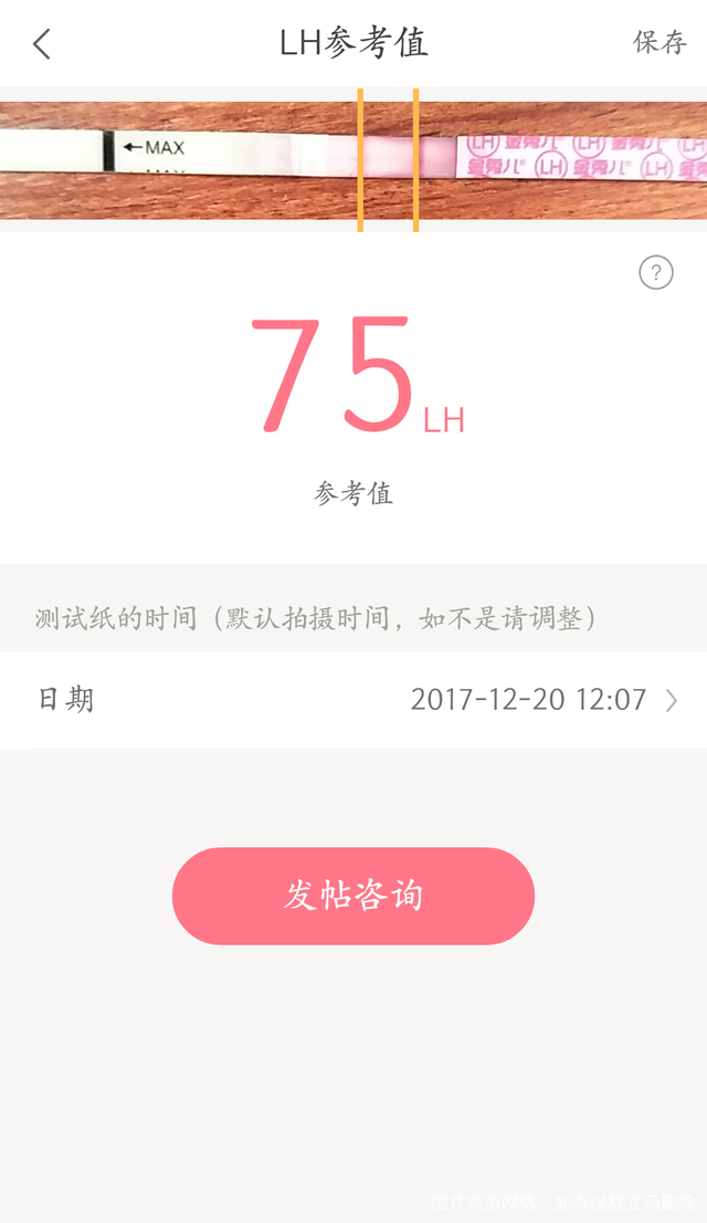 上个月11-20来的姨妈,今天一个月了。早上用测测了一下,显示的很奇怪,看不懂,旁边都花花红红的,是试纸有问题吗?