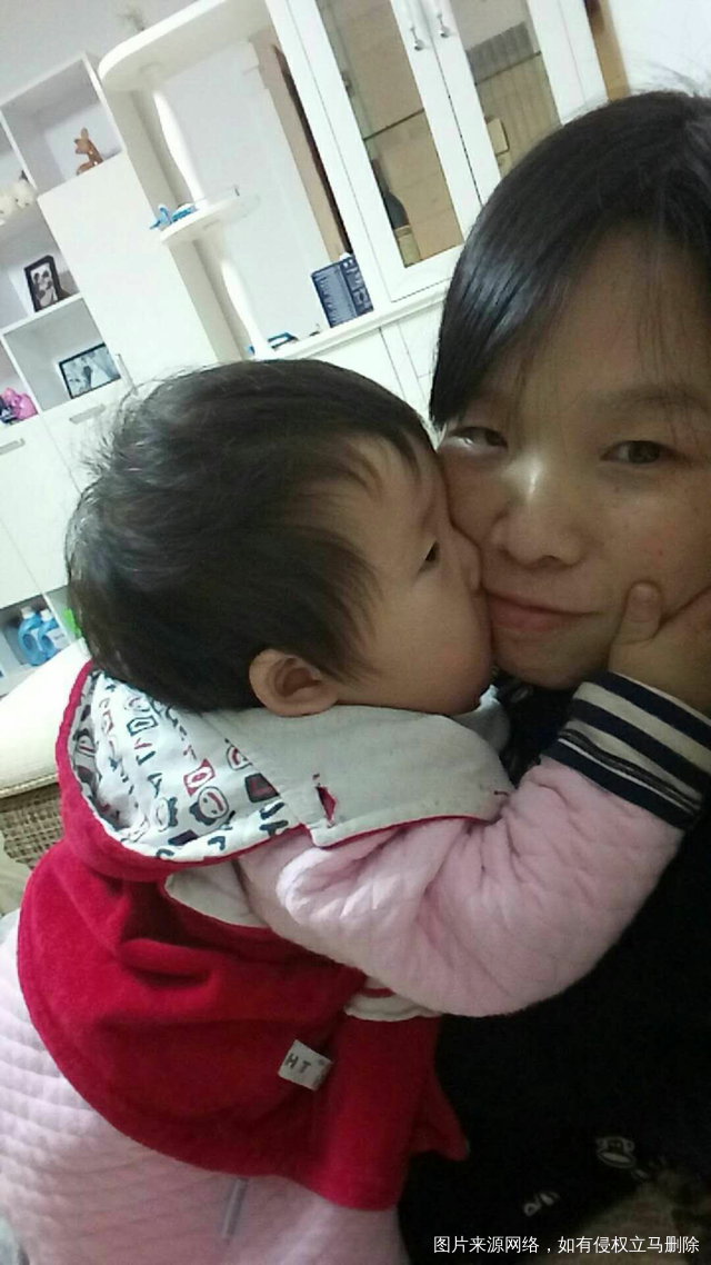 宝宝第一次亲我:那天只有我和宝宝在家,我们高兴的玩耍,自拍,突然间,她抱着我亲了我……感觉特别幸福!我赶紧记录下了这珍贵的一刻!