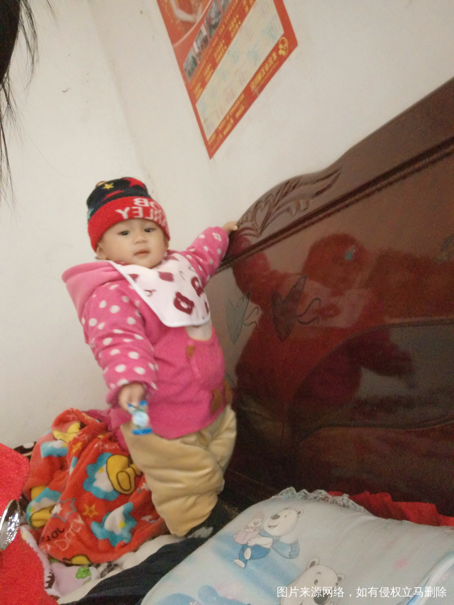 会叫爸爸,九个月会扶着东西站起来,到现在能