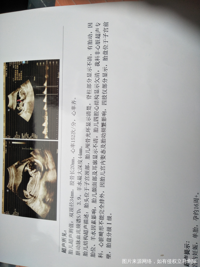 今天是怀孕16周去做了胎心监测还有做了一个B