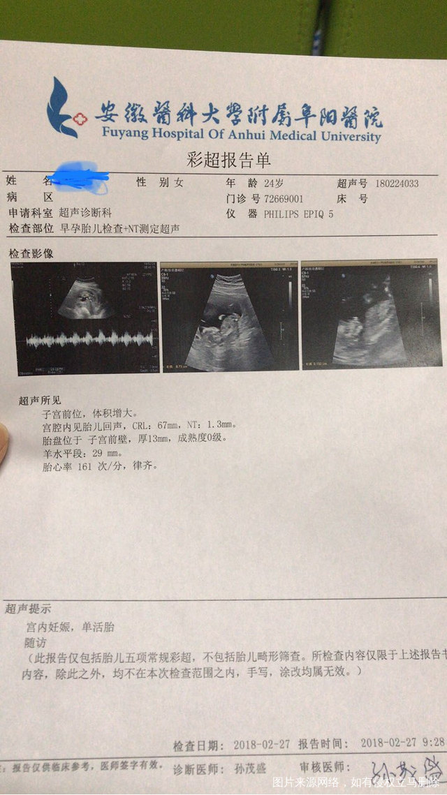 今天是怀孕16周去做了胎心监测还有做了一个B