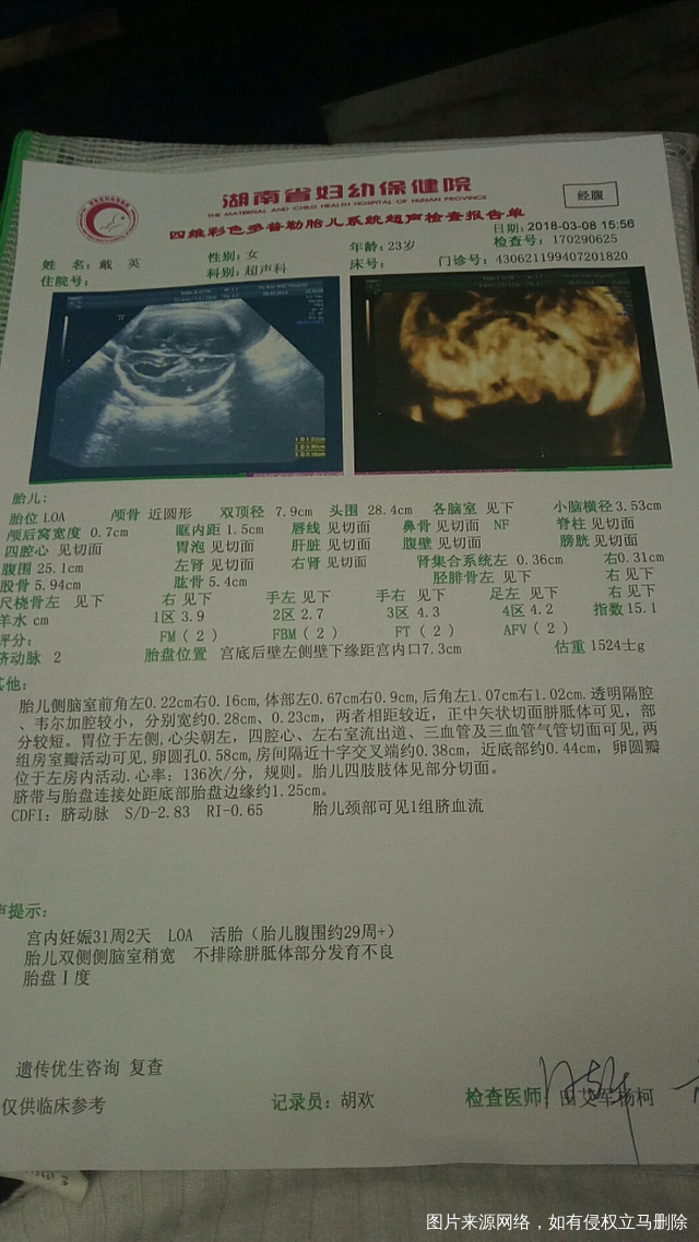 今天是怀孕16周去做了胎心监测还有做了一个B