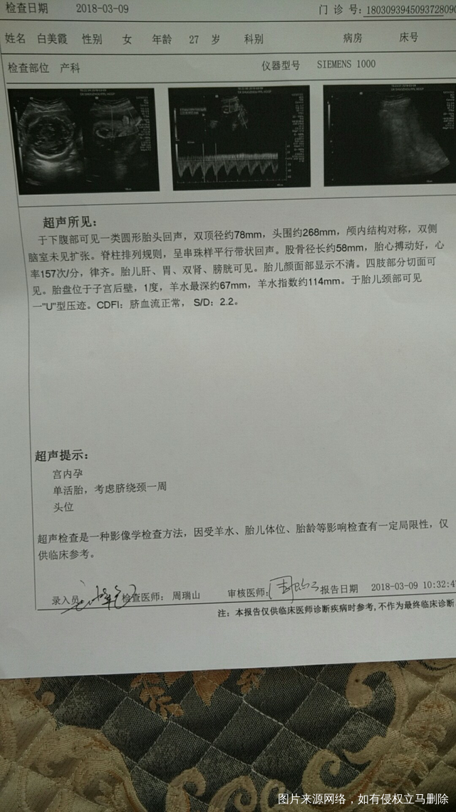 1号检查说胎位偏,经过一个多星期与宝宝的配合努力,今天去检查胎位终于转正了,宝宝在肚子里也很给力很配合,虽然今天医生说脐带绕颈一周了,但是不影响
