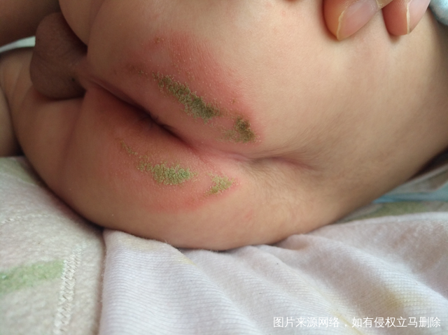麻烦宝妈帮我看看,宝宝红屁股上面绿色是破掉的皮吗,怎么样能让宝宝好起来呢