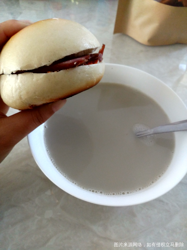 我的早餐,烤馍夹牛肉,一碗黑豆浆