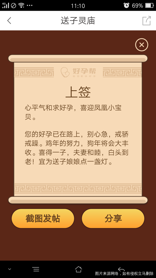 这两天都是上签,希望送子娘娘能送我一个健康的宝宝!