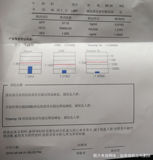 请医生帮我看看唐氏筛查的结果,还没找医院大夫看过