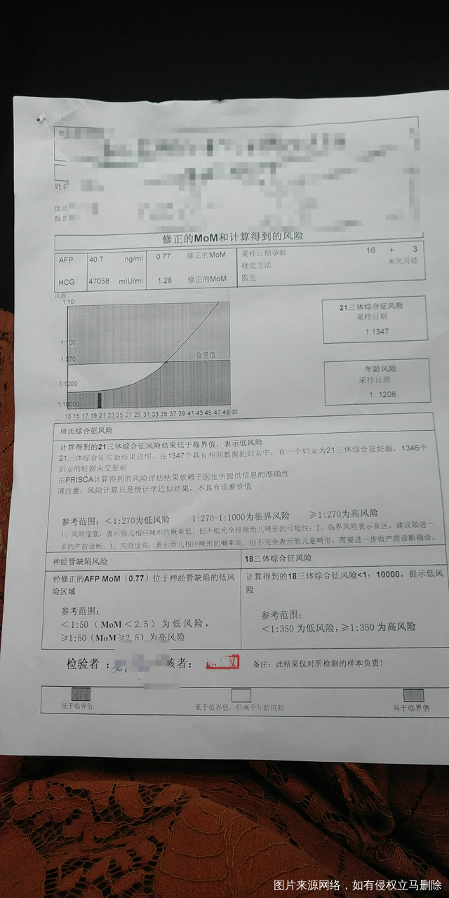帮忙看下唐筛结果单子,谢谢!