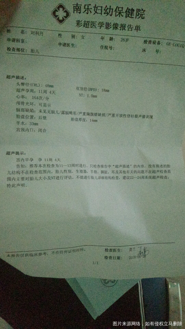 今天是怀孕16周去做了胎心监测还有做了一个B