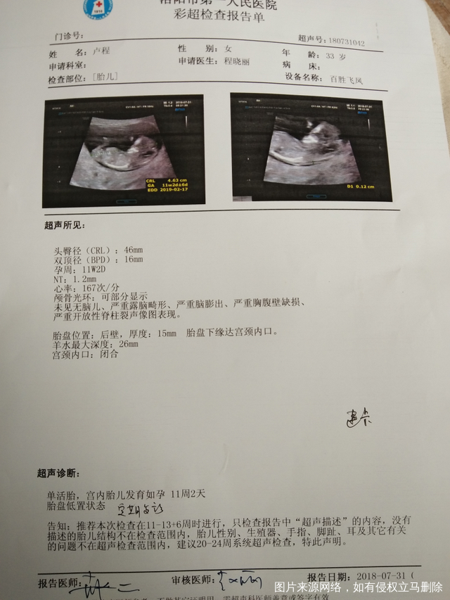 今天11周+4去医院做了NT,我想咨询一下医生,我这个有什么问题没有,上面显示胎盘低,15mm后壁,害怕有问题,帮我看下吧!谢谢