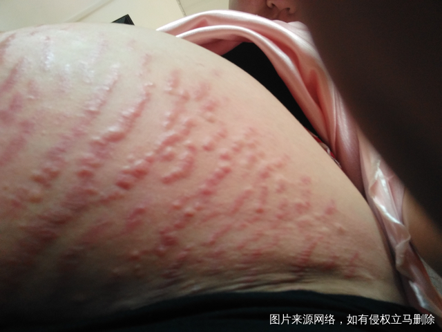 孕32+6,肚子上的纹纹超级痒,挠的都是疙瘩
