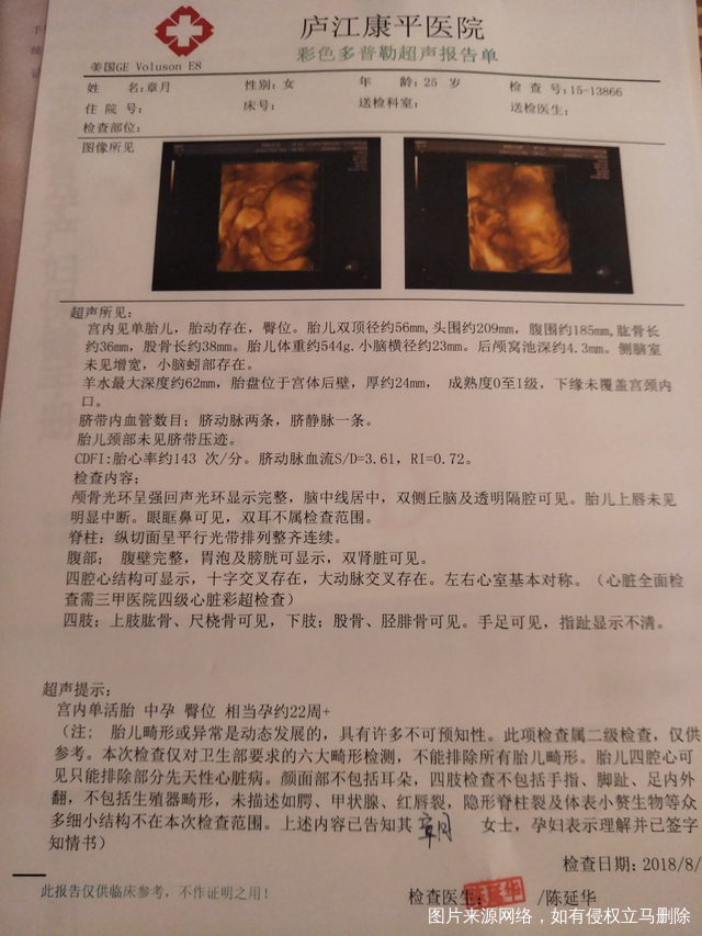 这是今天做的四维报告麻烦医生看看结果怎么样啊
