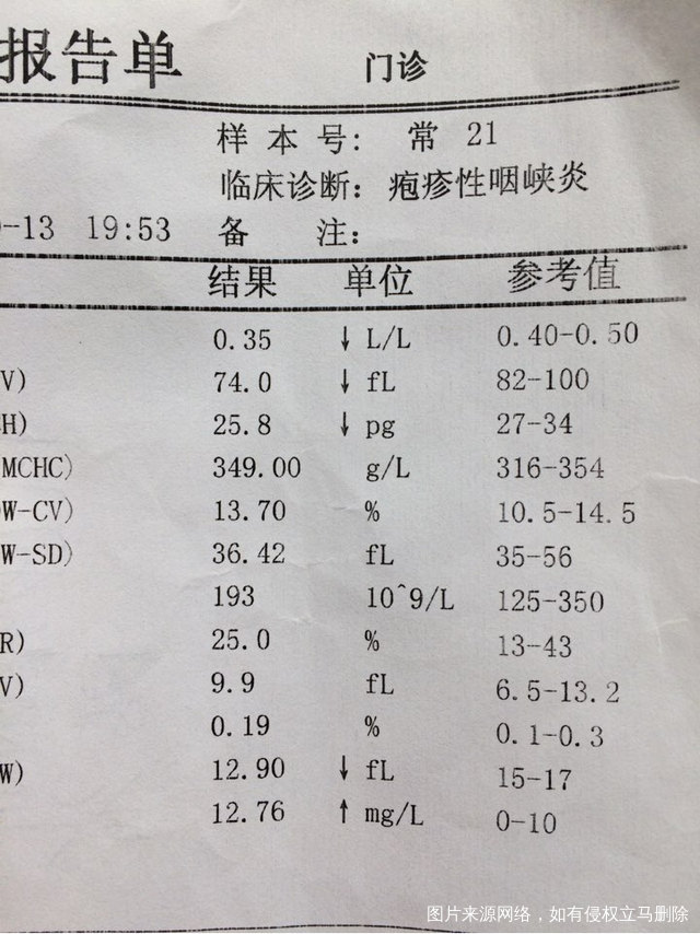 疱疹性咽峡炎,不知道有多少姐妹了解?我是上周四第一次接触到。简单说,疱疹性咽峡炎是由肠道病毒引起的以急性发热和咽峡部疱疹溃疡为特征的急性传染病,以粪-口或呼吸道为主要传播途径,传染性强,夏秋季为高发季节,主要侵犯1~7岁小儿。症状:发热、咽痛、咽峡部黏膜小疱疹和浅表溃疡。为自限性疾病。