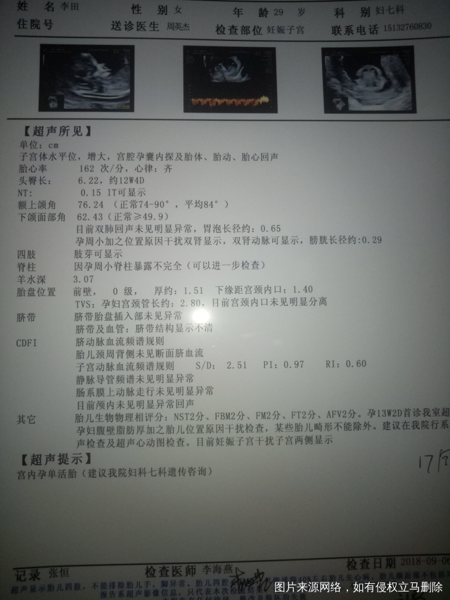 今天是怀孕16周去做了胎心监测还有做了一个B