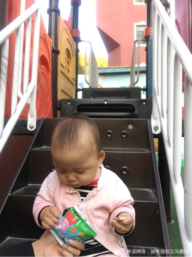 儿子玩累了,休息一下,吃点东西