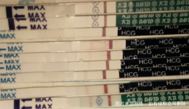 是不是加深了。几率多大。?上月就是二十号来的月经。今天还没来。想着明天去验血。最后两根都是刚才测的。上面的是上三天测的。