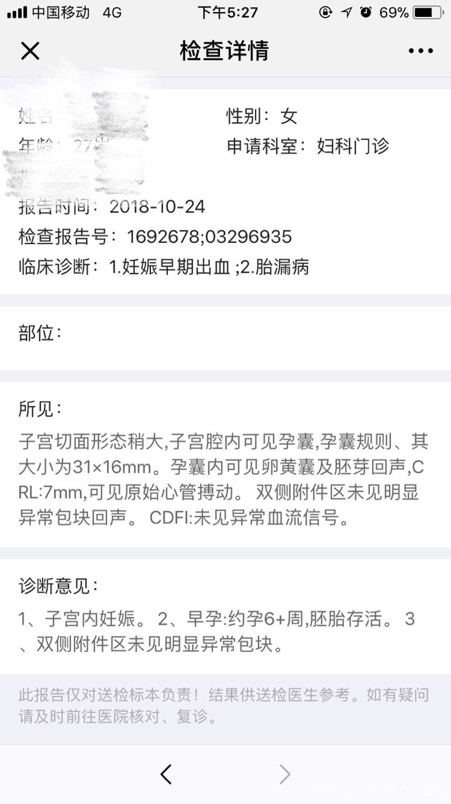 p.s.不是很懂为啥就被标注胎漏?可能有出褐色分泌物?可能孕酮下降?