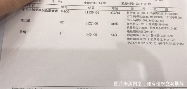 10月21放的鲜胚2枚,31号查的怀孕,当时第十天血值41.67,11月5号2抽血值124,血值不高回去猛补,每天吃鸡喝鸽子汤,10号回去抽血血值805,情况越来越好,17号回去4抽血值6378,18号晚上半夜肚子痛,今天就回去提前做了阴超抽了血,医生说单胎,情况好,胎稳,有胎心,痛是因为巢过大未恢复。不用担心,炒鸡开心,希望我的宝贝再接再厉。努力加油哦
