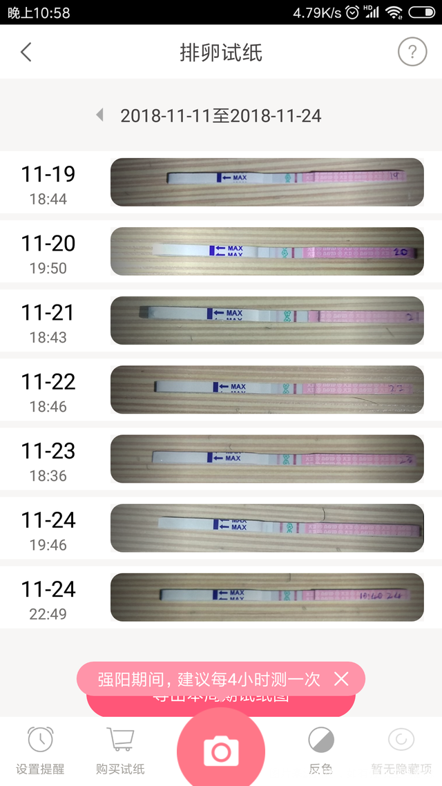 11月11号来的月经16号停的,从19号开始测,今晚测的两条线,都挺深的,是不是要排卵了?