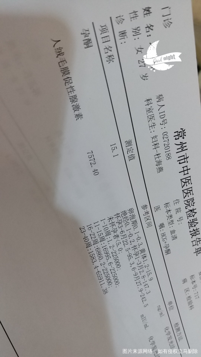 从你描述的情况和化验结果看,翻倍还可以,明天不需要再次测试,可以间隔四天到医院复查一下