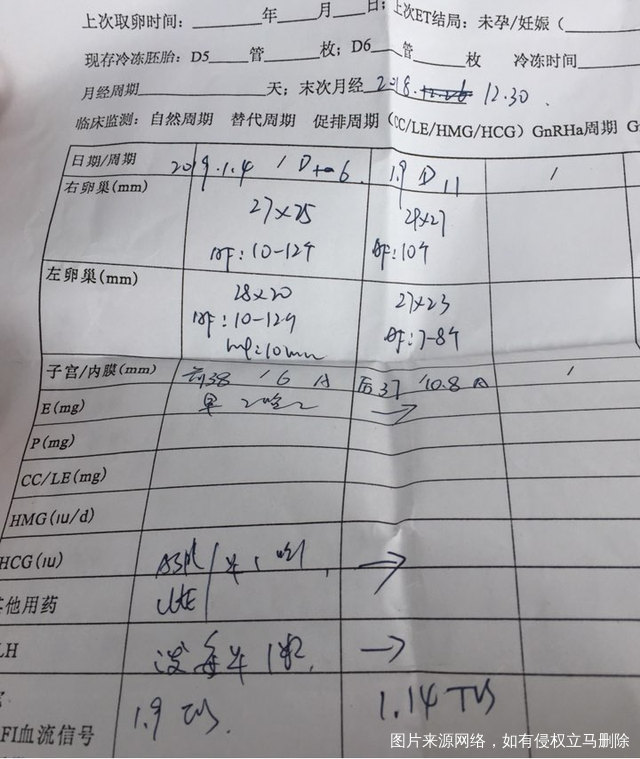 取卵后第二次月经12月30号,1月4号去医院复查医生建议走人工周期,用药情况:补佳乐早晚各2粒,维生素e早晚1粒,泼尼松晚1粒,阿司匹林早晚各1粒,1月4日晚开始吃的,今天来复查,医生说接着吃5天,下面是我今天做的b超单,请问医生内膜正常吗?大概什么时候可以。