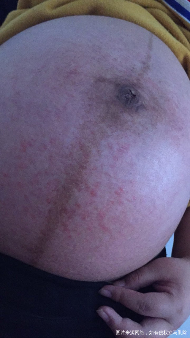 现在怀宝宝37周➕4了,可肚子上出了好多红色的痘痘,还有点发痒,是怎么回事啊?